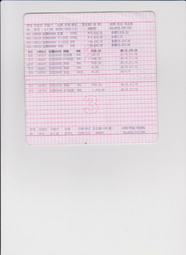 중국공상은행통장(2014년6월)