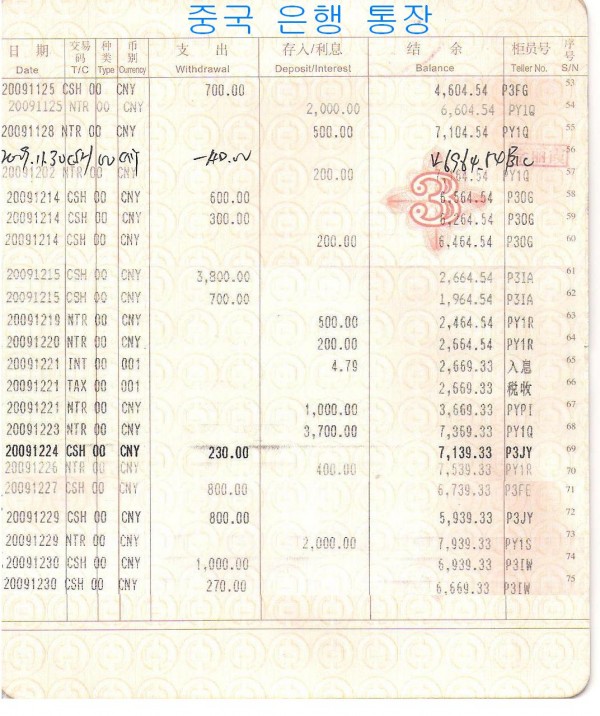 중국지역 제60회 재정보고(2009년12월01일~12월31일까지)
