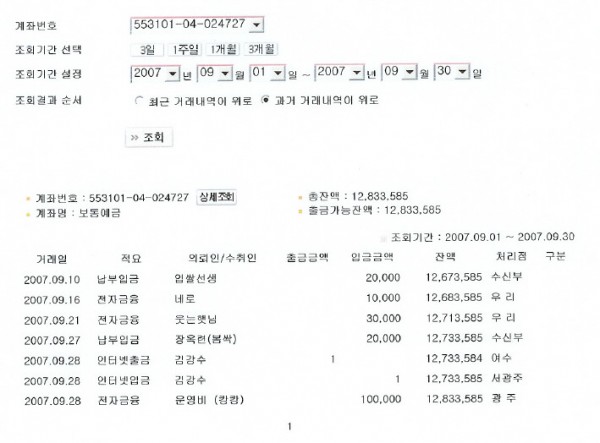 [한국] 제74회 재정보고 2007년 9월 1일부터 31일까지