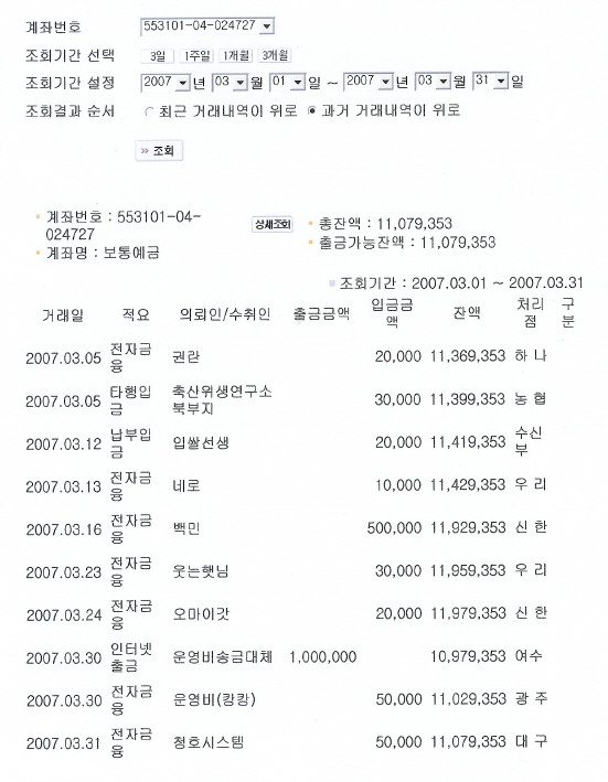 [한국] 제68회 재정보고 2007년 3월 1일부터 31일까지