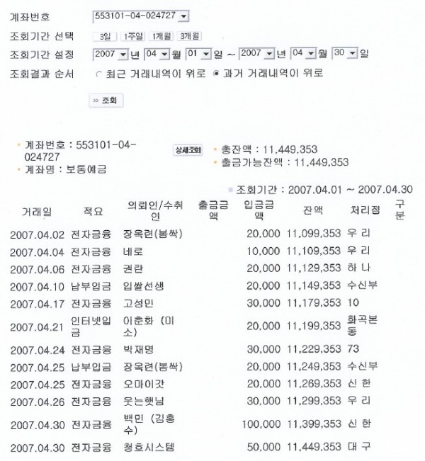 청호님 .................. 50,000 원 총잔액 ............... 11,449,353 원