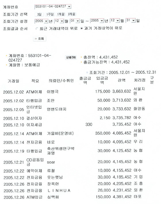 [한국] 제54회 재정보고 2005년 12월 1일부터 31일까지