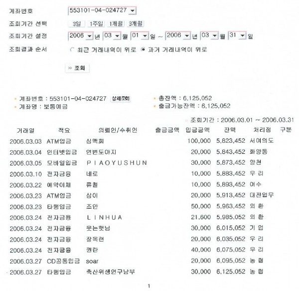 박재명님 .................... 30,000 원 총 잔액 ......... 6,125,052원
