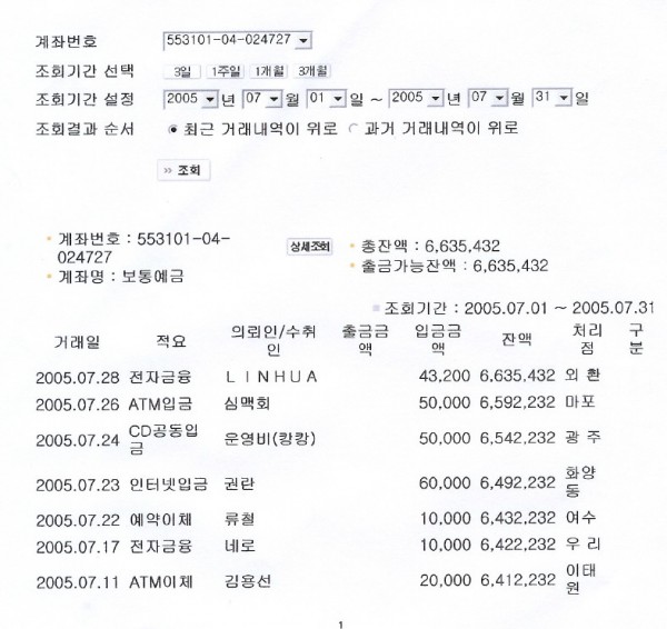 한국지역 2005년 7월 성금내역입니다. ^^