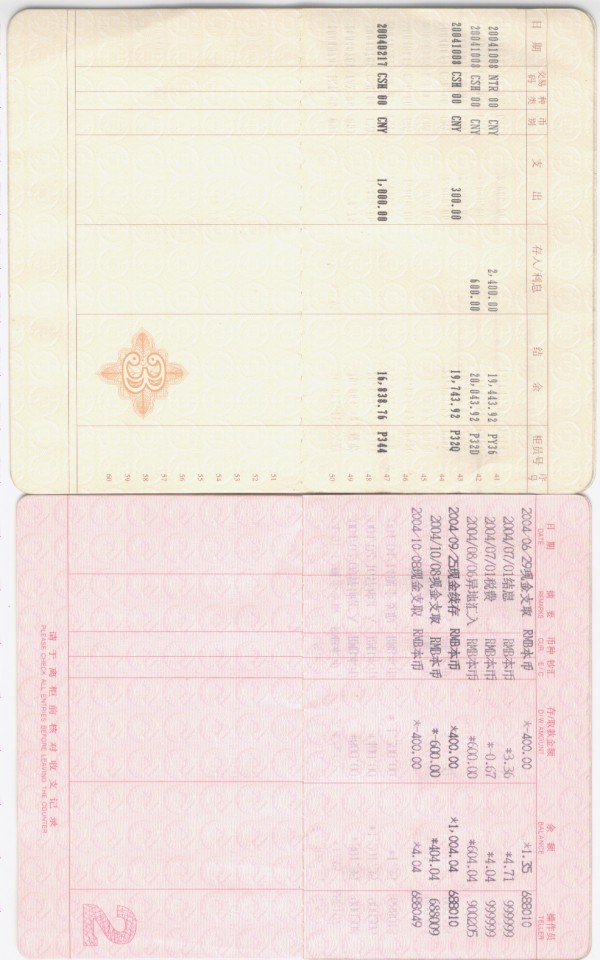 2) 중국 은행 , 건설 은행 구좌 입니다.
