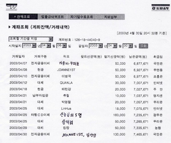그리고 맨아래 13만원은 조안님이 10만원, 김선생님이 3만원을 보내주신 것이며, 신농님을 비롯한 여러분들이 이번 한국 오프라인 모임 때 친히 오셔서 성원해 주신 것입니다.