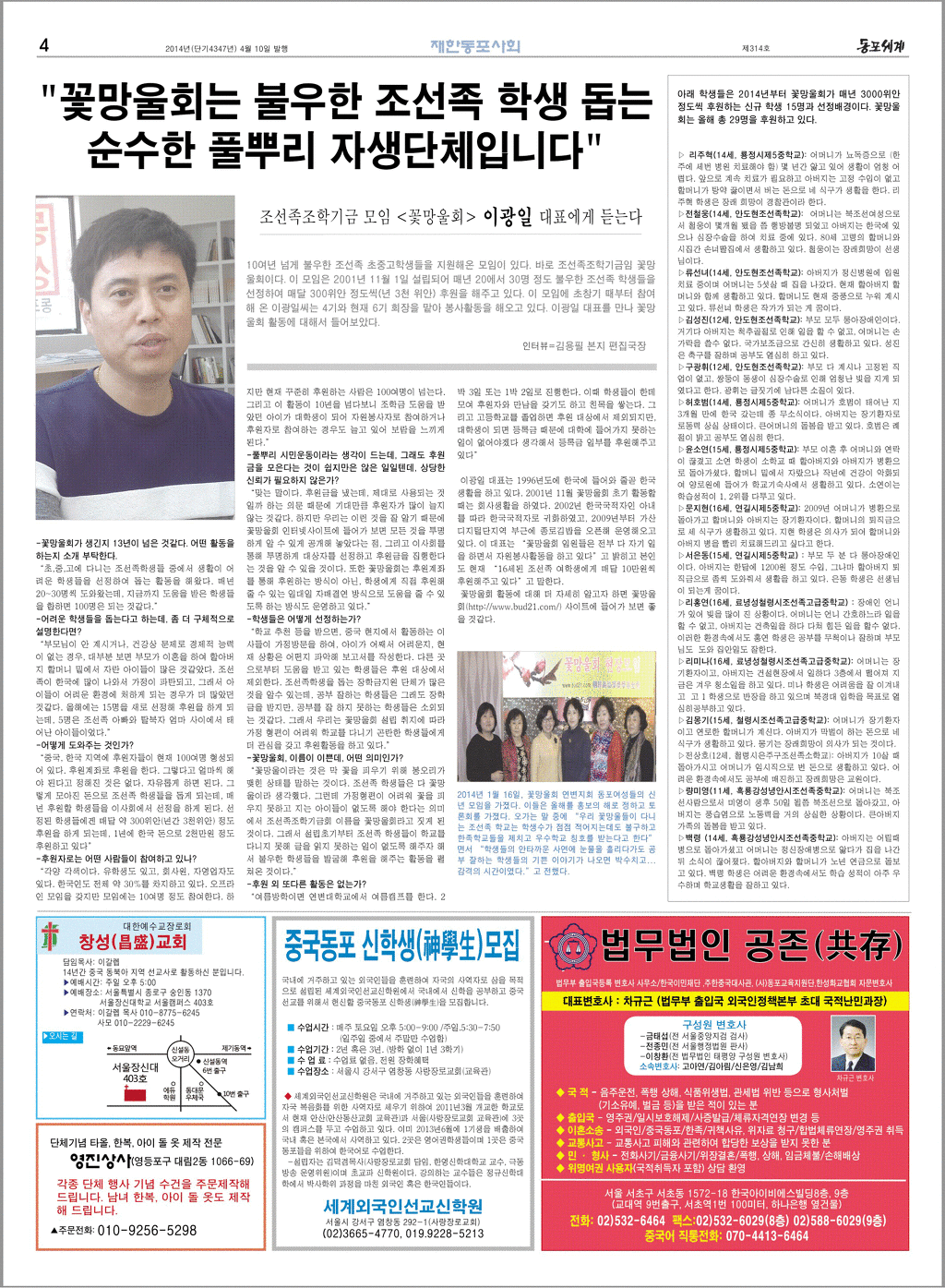 동포세계신문 제314호(2014.4.10) 꽃망울회기사보기